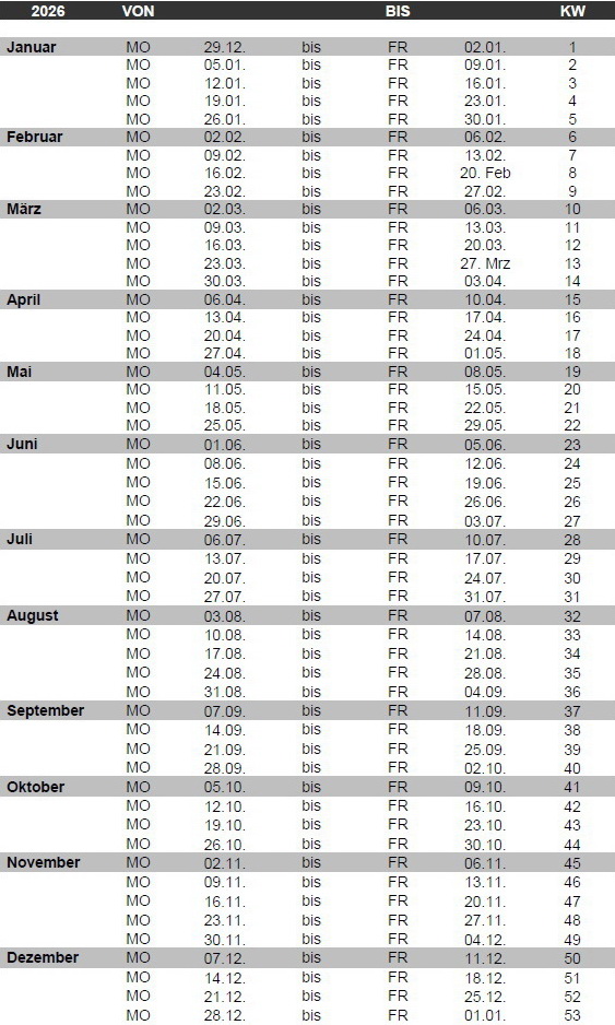 • Kalenderwochen